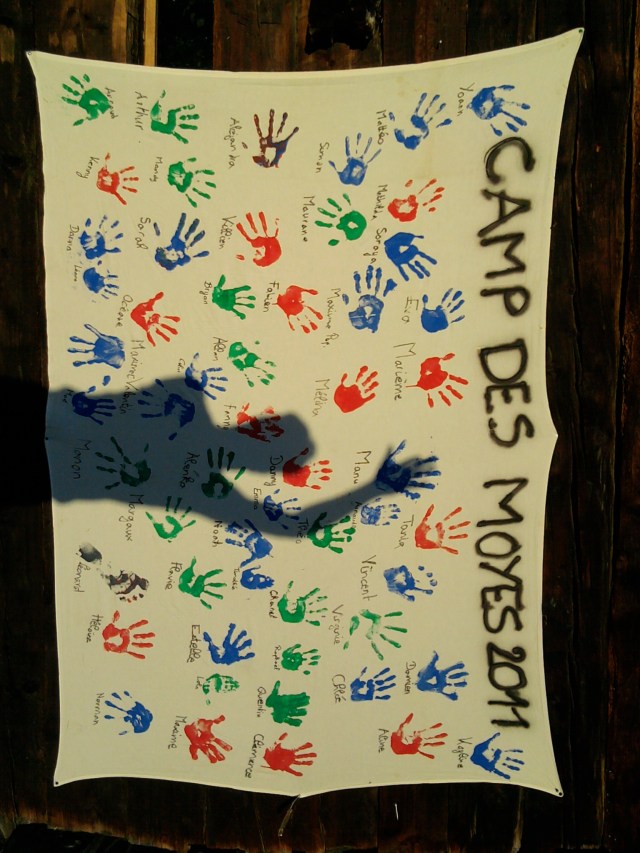 Le camp des Moyes 2011 s’est achevé sous un soleil resplendissant, la perturbation qui nous a concerné mercredi et jeudi n’est plus qu’un amusant souvenir. Nous n’avons perdu personne en route. Quand 11 petits se sont ajoutés aux 36 pensionnaires de la semaine et aux 8 moniteurs jeudi soir, le mayen des Moyes battait son record d’âmes abritées. Les premières photos sont publiées sur un album public et les participants recevront un lien qui leur permettra d’ajouter les leurs. Un petit film sera monté avec les images prises quand Bastien le bûcheron est venu partager ses connaissances sur la forêt.