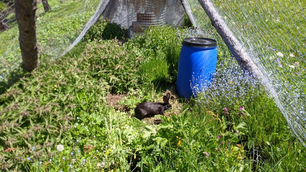 Ambroise Lapin et son pote Barnabé Mol défrichent l’enclos. La progéniture d’Ambroise prend des forces à la Tzoucdana à Zinal, les garçons rejoindront papa aux Moyes.