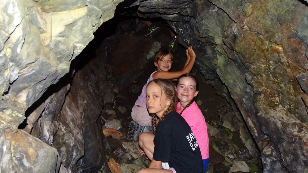 La troupe réduite à ses infimes proportions est ensuite remontée le torrent de la Coor pour tester sa nouvelle taille dans la mine de cobalt au pied des rochers de Golyre, qui offre un passage de souris vers une faille qui conduit vers l’air libre. Peu de claustrophobes parmi les MiniMoyes, certains courageux ont même tenté plusieurs fois le passage.