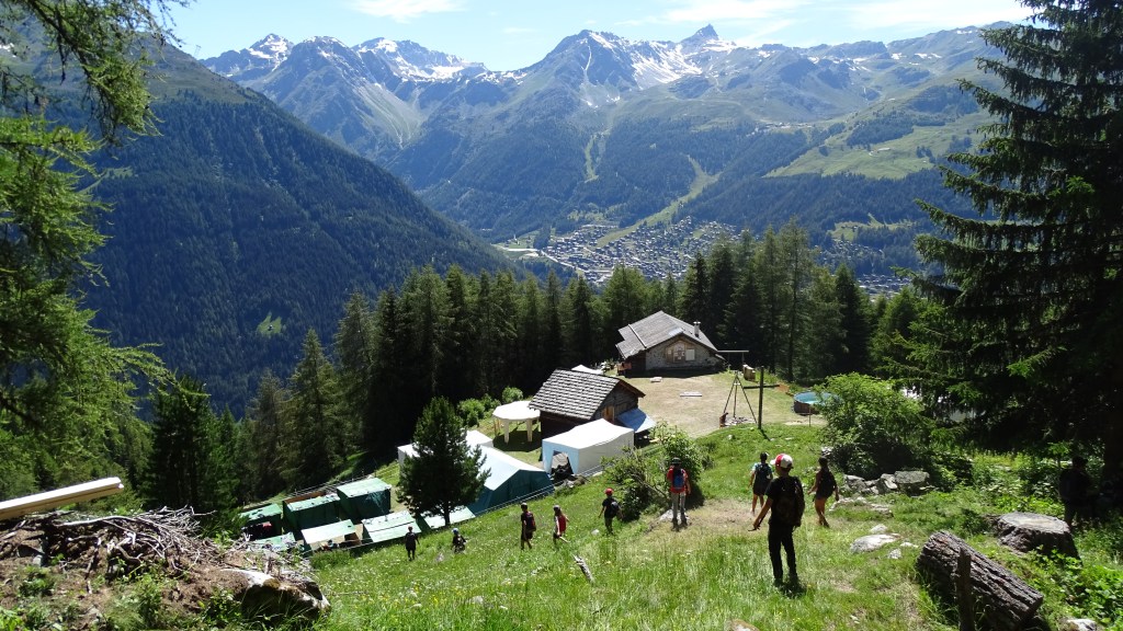 Après les pâtes sauce bolognaise préparée par la Tzoucdana à Zinal, les royaumes se sont à nouveau affrontés dans un grand concours de cris, les Moyjitos ont encore emporté le point en atteignant les 90 décibels à 5 mètres du capteur, la partie des autres équipes consistera demain à rattraper cette équipe héroïque. Les jeux et les histoires autour du feu ont complété cette journée magnifique. La nuit dernière fut très calme, et les MiniMoyes semblent assez calme ce soir pour un nouveau sommeil réparateur, avant l’arrivée demain de 20 MicroMoyes qui termineront la semaine avec nous. La météo semble tourner à l’orage le vendredi soir, mais nous avons suffisamment d’abris pour passer notre dernière nuit au sec. Quitte à se serrer un peu…