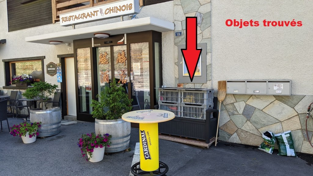 Les objets retrouvés aux Moyes sont devant la porte d’entrée du Qi-Lin à Ayer jusqu’à dimanche 25. Ils sont répartis dans des cageots selon les photos ci-dessous. Ce qui reste sera offert à Job-Transit en automne.