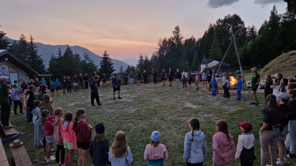 La majorité du camp dort à la belle étoile ce soir, nous profitons des températures exceptionnelles pour profiter des beautés de la nature. Demain soir, MétéoSuisse nous promet un magnifique front orageux qui ne fera peur à personne, mais qui nous contraindra à nous installer bien à l’abris dans les dortoirs et les tentes. Minions et sauvages certes, mais pas fou. Tout le monde se porte bien, la victime du jour est un moniteur qui s’est coincé un bout de peau dans une chaise longue pliable. Ce qui a bien fait marrer Manugru et tous les Minions des Moyes.