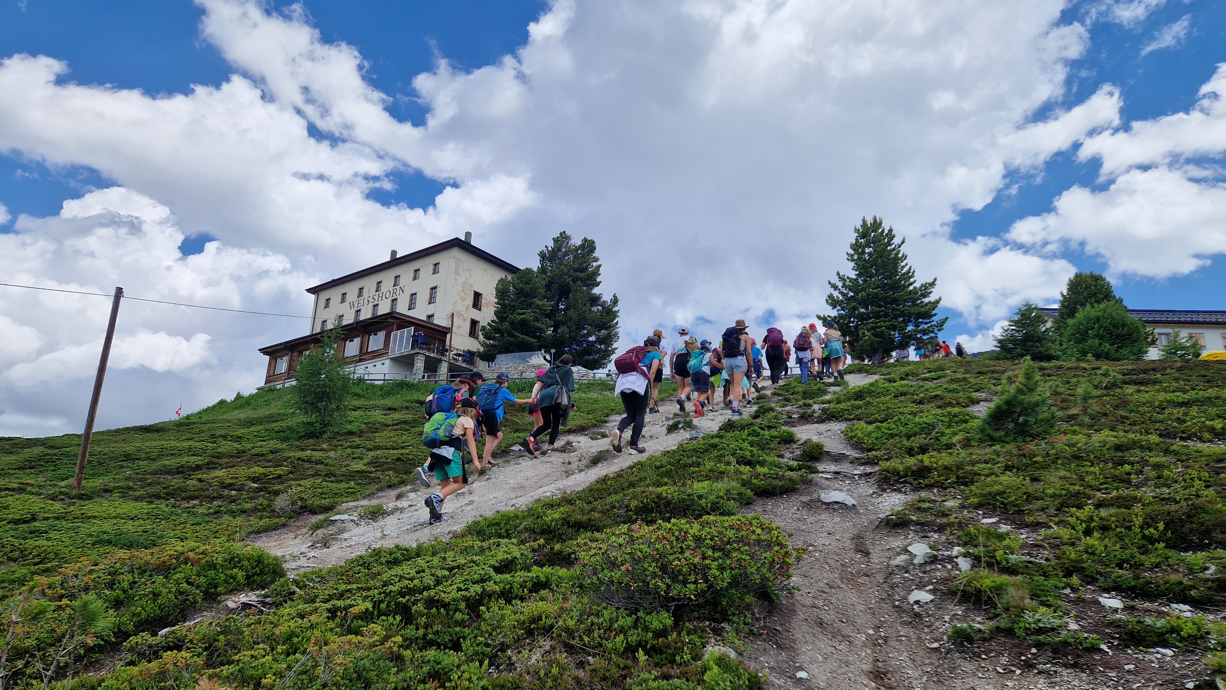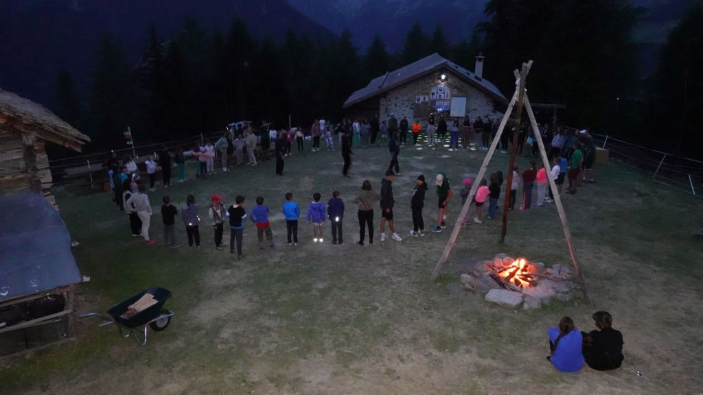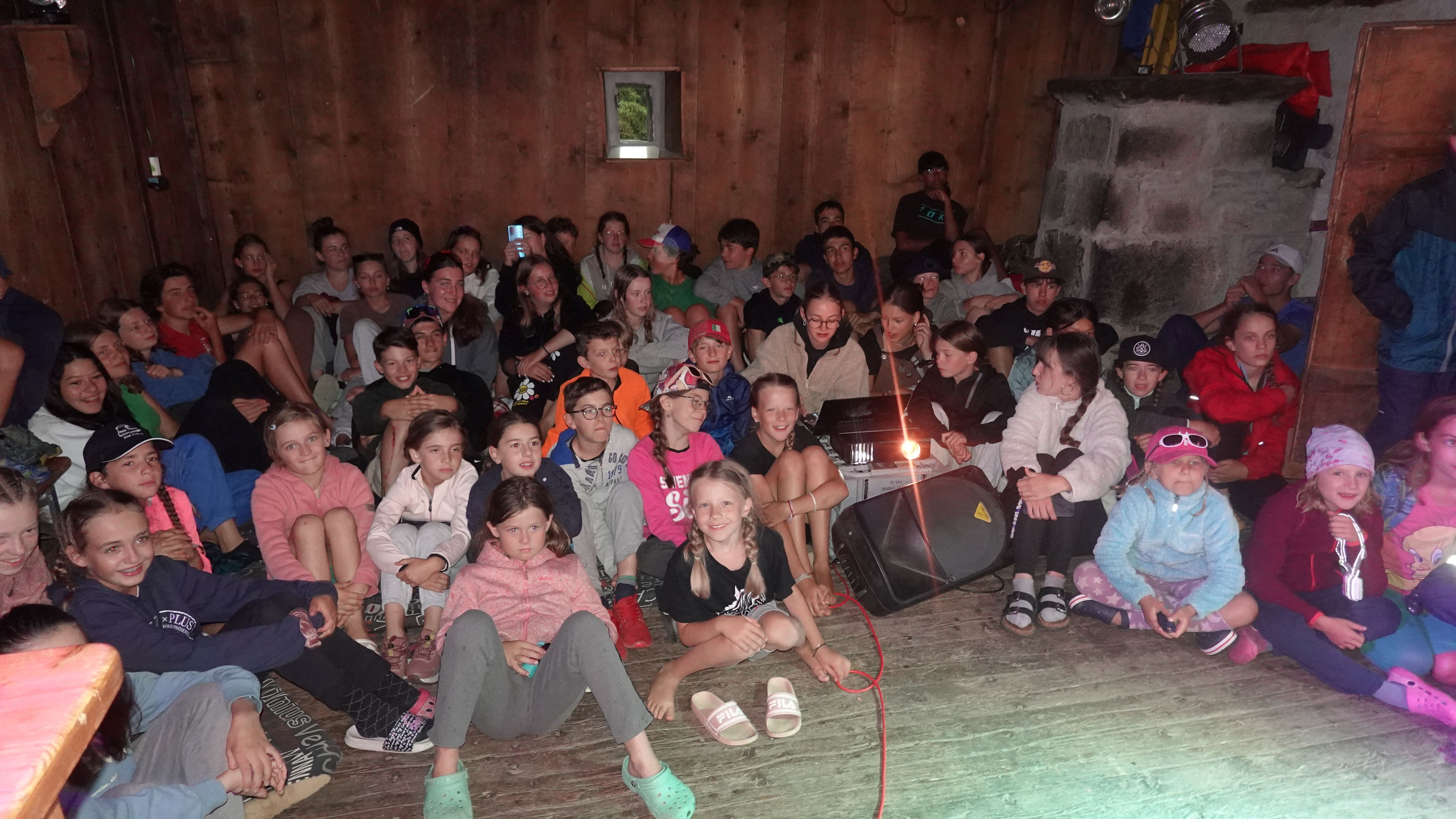 A la croisée des chemins la question fut démocratiquement posée : allions-nous passer terroriser les clients et le personnel de l’hôtel ou passer tout droit et éviter les derniers 150 mètres de montée. A la quasi unanimité des Minions, nous sommes montés dévaliser le congélateur à glaces. De retour au camp, après un excellent repas préparé par les moniteurs, un nouvel orage s’annonça. Nous avons de l’expérience depuis le camp 2021, un karaoké organisé dans la maison blanche regroupa des Minions déchaînés sur des rythmes fous.