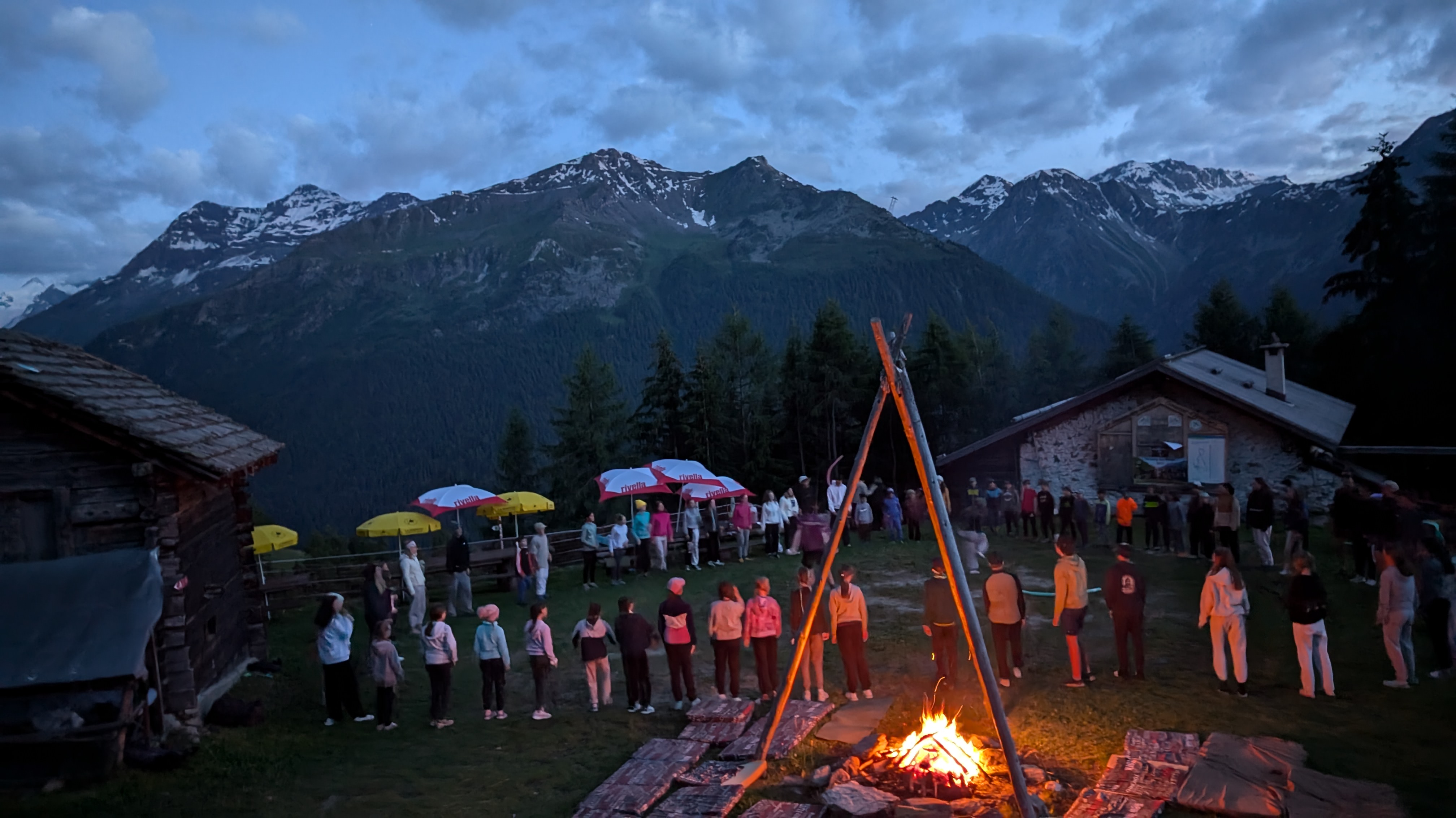 Pour le reste tout se passe bien, épuisés par les jeux de groupes tous les villageois s’endorment. Enfin, presque tous… Nous profiterons demain d’une météo garantie pour visiter les fâches du Toûno en passant par l’hôtel Weisshorn. On parle, une rumeur bien sûr, d’une terrible bestiole qui rêve de nous faire marcher jusqu’à épuisement. Nous serons forts.