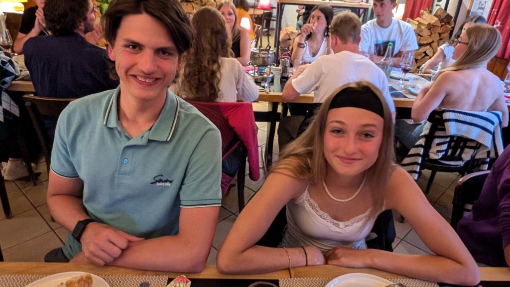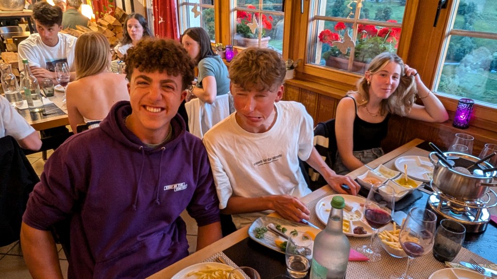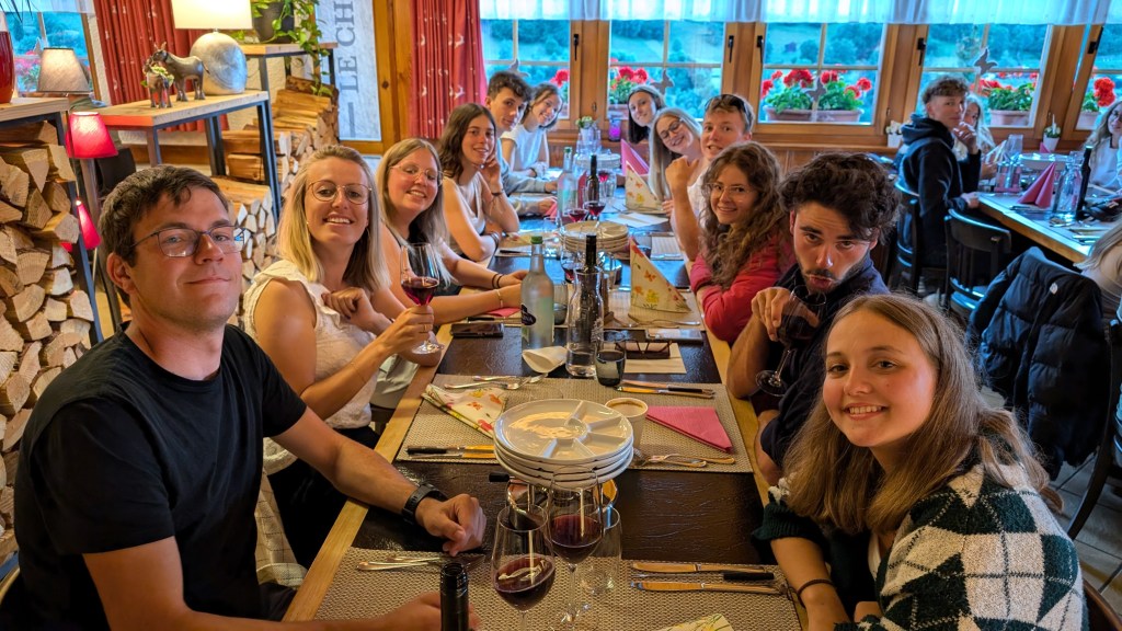 L’aventure à continué avec le souper des moniteurs chez Steph et Véro au Cholaïc à Mission, nous avons été sages les patrons ont offert les cafés-digestifs. Les quatre ânes restent l’été aux Moyes pour nettoyer le terrain, si vous passez par là, offrez-leur une pomme ou une carotte, mais pas de pain. A bientôt avec Ayer pour demain !