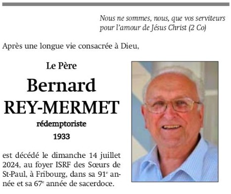 Nous apprenons avec une énorme émotion que le Père Bernard Rey-Mermet, fondateur du camp des Moyes, est parti rejoindre son Patron à l’âge de 91 ans.