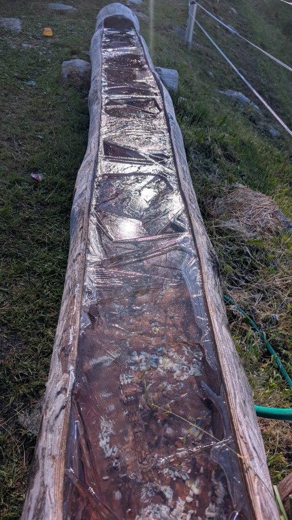 Le bassin était gelé ce matin, pas légèrement en surface mais sur quelques centimètres, ce n’était plus arrivé depuis le Pôle-Moyes. Peu de plaintes, tout le monde semble avoir passé une bonne nuit, faut bien dormir de temps en temps même s’il fait un peu froid.