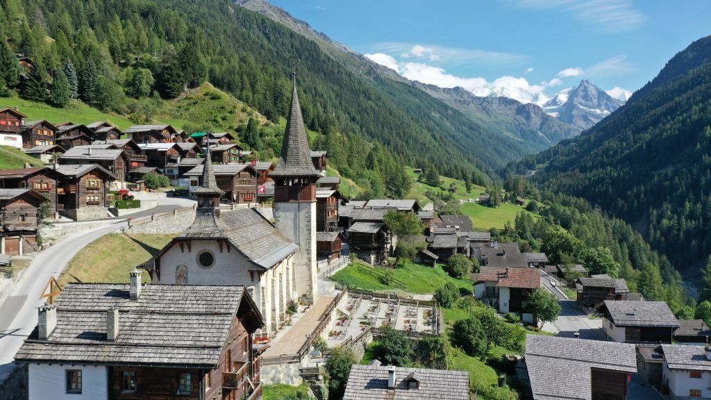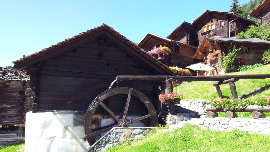 A l’essor des stations de ski à la fin des années 1960, les autochtones ont développé les infrastructures touristiques dans le village-mayen de Zinal six kilomètres en amont. Le vieux village, préservé des incendies, des avalanches et du développement des stations, traverse le temps en maintenant son cachet historique. Madriers de mélèzes noircis par le soleil, toits de bardeaux, avec au centre l’église Sainte-Anne comme une bergère qui rassemble son petit troupeau de chalets.