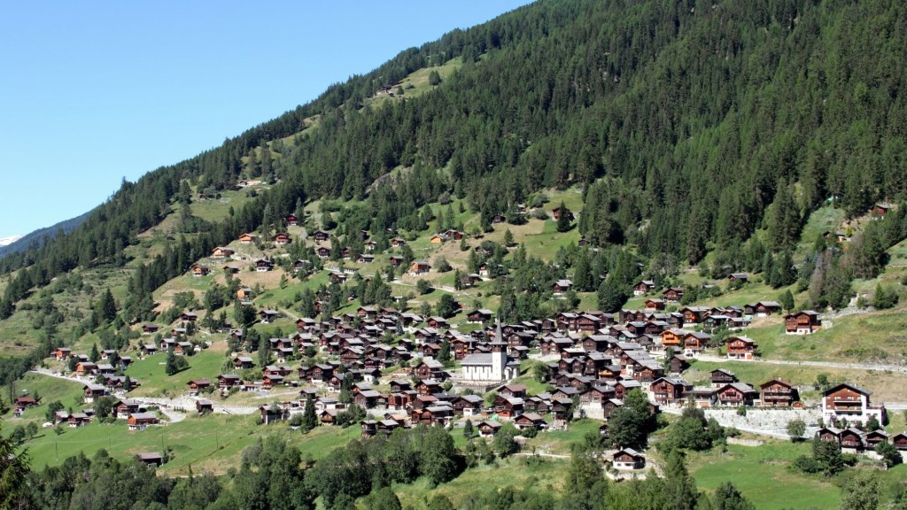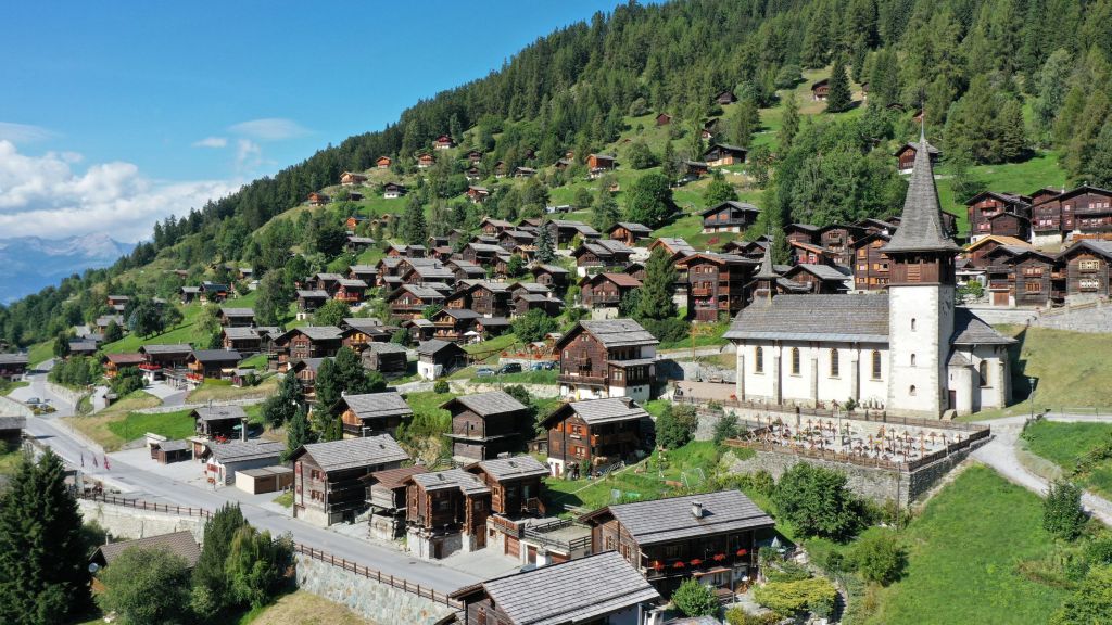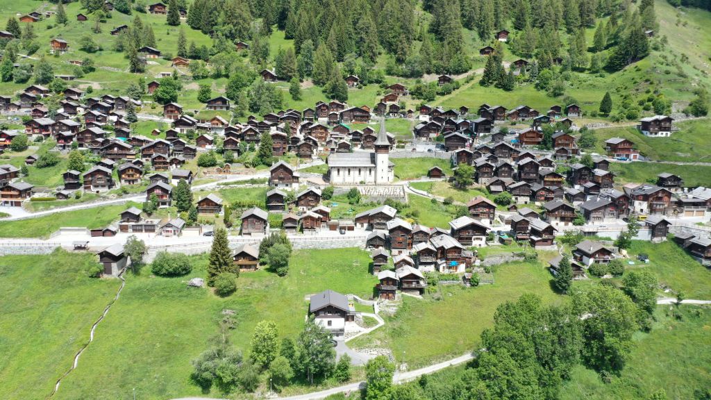 Le village d’Ayer étale ses chalets de mélèze entre 1400 et 1600 mètres d’altitude sur la rive est du val d’Anniviers en Valais. Fin 2024, le village compte 205 âmes dont 102 femmes et 103 hommes, une grande partie des bâtisses sert de chalets de vacances ou de résidences secondaires.